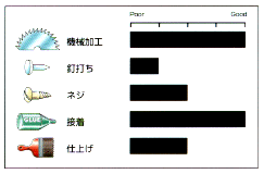 - 剛性が低いほか、全ての強度が中程度。スチーム曲げ加工に適す。