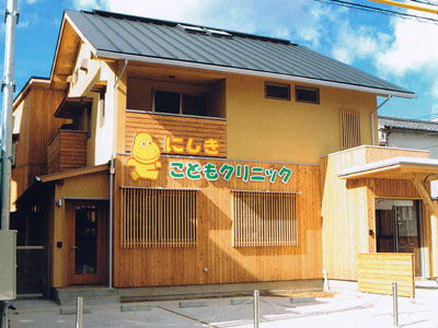 ファーサイド側外観。最近では珍しい木造の住宅併設の医院である。右手がクリニックの玄関。住居の玄関は左側にある。