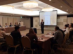 このプロジェクトに現在参加を予定しているのは10チーム。そこに静岡県内に営業所・倉庫を置く木材輸入問屋2社の担当者が出席し24名での交流会となりました。 午後2:00〜午後4:00、その2社の木材問屋・倉庫を訪問し実際のアメリカ広葉樹製材を見学いただきました。そして、午後5:00〜午後7:30ホテルアソシア静岡にて交流会を開催しました。