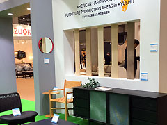 今年は「アメリカ広葉樹と九州の家具産地」と銘打って、九州の5つの家具産地、福岡県大川市と朝倉市、佐賀県諸冨、大分県日田、宮崎県都城より15社が参加し、アメリカ広葉樹を使用し製作した家具が展示され来場者から注目が集まりました。