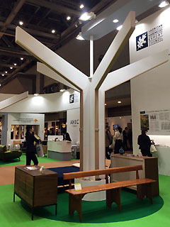 アメリカ広葉樹の立木をイメージして作られた14コマにも及ぶ大きなブースには、様々な樹種を使用して製作されたベッド、シェルフ、チェスト、椅子、スツール、テーブル、ソファそしてオート掛けや時計に至るまで各社の個性や思いが溢れる作品が並び、大変見応えのある展示となり多くの来場者にご覧いただくことができました。