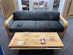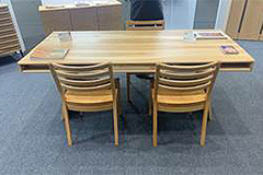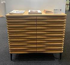 今回展示されたテーブルでは、はっきりとした心材と辺材のコントラストがうまくデザインに取り入れられ、大変な人気。新しい樹種に手ごたえを感じる展示となりました。